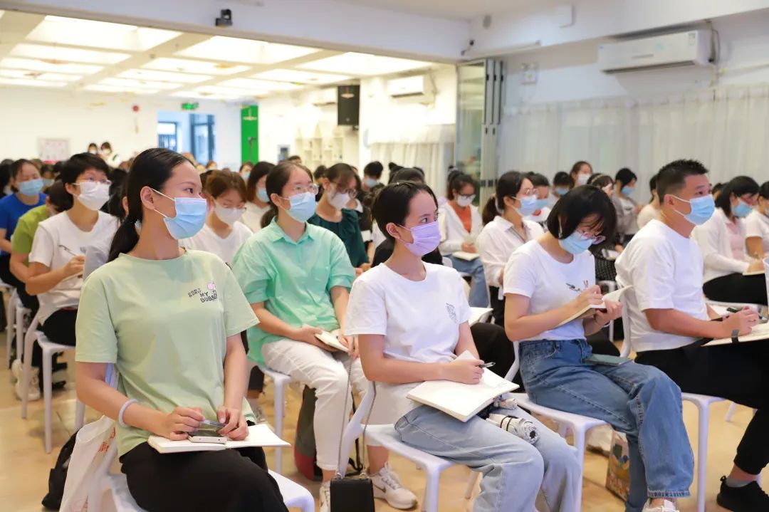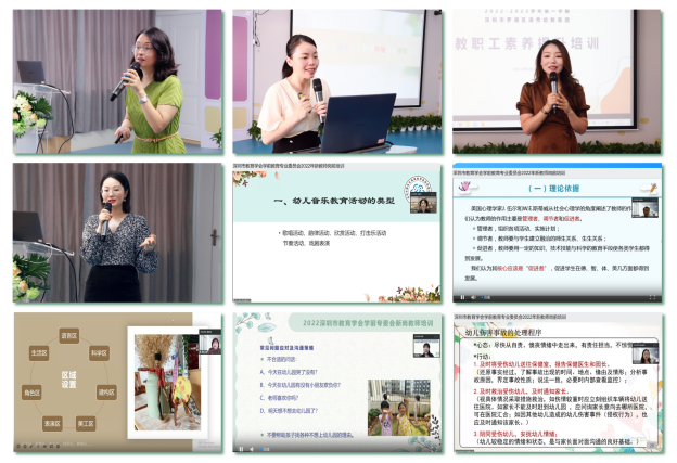 培训内容涵盖国家政策、集团文化、规章制度、教师发展、清秀课程、家园共育、后勤安全、素养提升等34个主题,集团8园1点450多名教职工共聚同一目标。集中与分层、线下与线上、理论与实操相结合的培训形式促进教职工把系列极具深度的知识盛宴通过“具体化”“先厚后薄”的方式内化于心,外化于行。培训活动恰逢深圳市教育学会学前教育专业委员会(以下简称学专会)2022年新教师岗前培训,集团积极借助学专会的专业品牌和庞大力量,融合集团内部培训主题,特别安排集团3年以内新教师(含新生力量)全程聆听专委会讲师团9位优秀的实践型讲师的成果分享。多样化的主题内容设计,让参训人员看到了“看见儿童”“幼有善育”的深圳质量,找到了“幼教梦”的方向和力量。