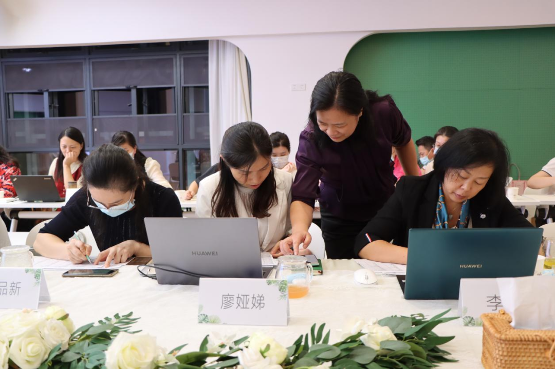 在总结交流环节上,集团郭琼总园长领衔集团各园执行园长了解一线卫生保健具体工作,深化卫生保健工作管理职能,共商共讨完善本园卫生保健工作管理细节。从“食谱”切入,郭琼总园长生动地为大家解读了“一周带量食谱”里的奥秘、营养膳食管理的要点及管理系统的便捷操作。参会人员知行合一,现场核算“带量食谱”中的实际用量,通过考核活动管理人员切实了解食材、膳食管理的点滴与规范管理,让管理有方、管理有数、管理有据。