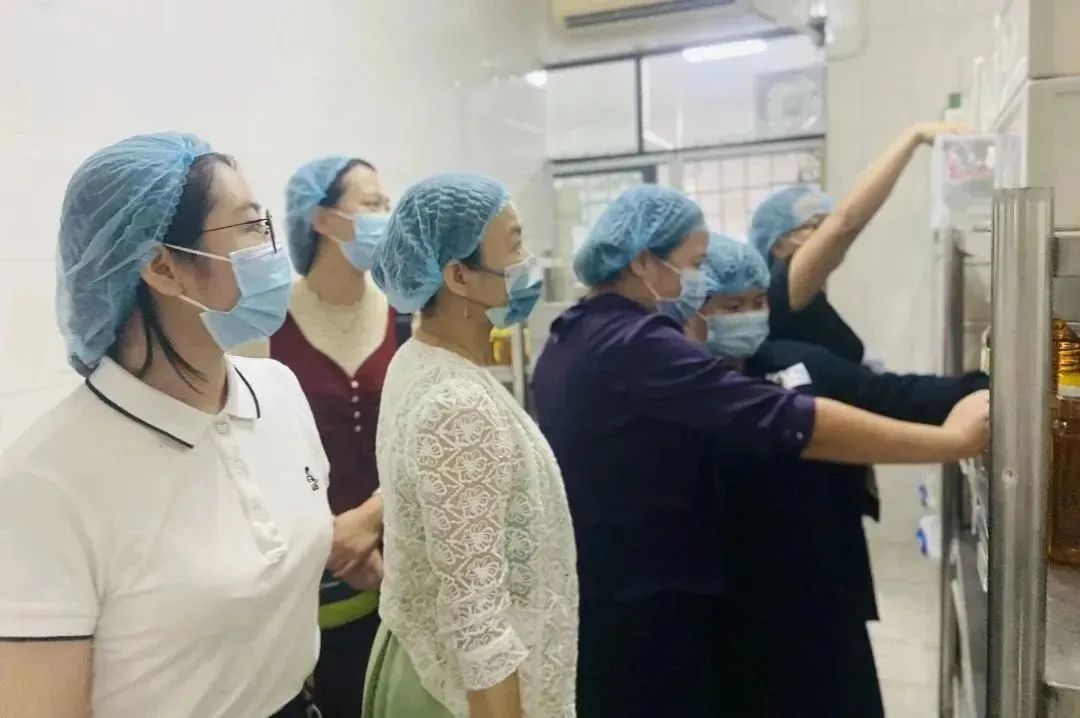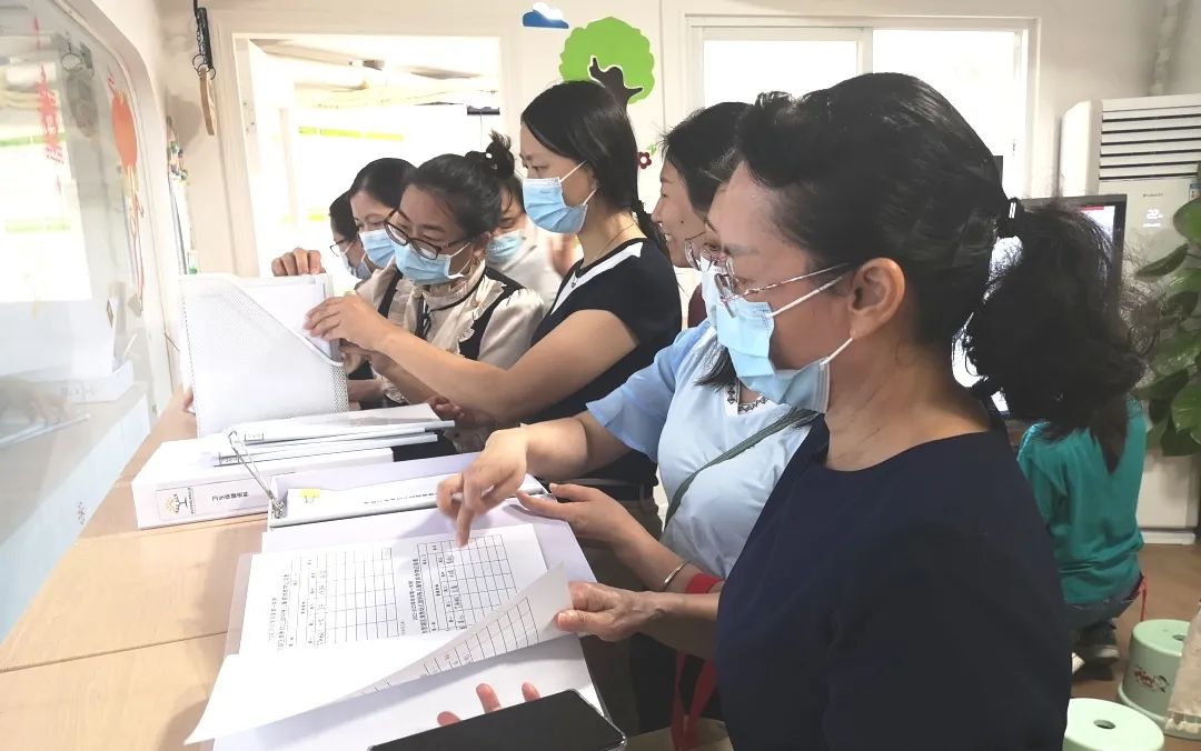 实践出真知,为直观深入了解各园卫生保健实况,各园后勤管理人员与保健医生走访各园,主要对卫生保健资料、食堂管理进行了精细化查看。依据卫生保健省级管理的制度建设、饮食健康、设施设备、卫生消毒与疾病防控、健康检查五个方面的标准,互访人员对卫生保健工作“十四大表格”,幼儿膳食营养调查、教职工/体弱儿食谱、幼儿心理筛查汇总与统计等纸质、电子资料进行了查阅,各园互查内省,取长补短。结合各园厨房环境与设计的不同,互访小组对各园厨房整体环境卫生、食材采购与存放、食物留样存放与标签记录等进行实地精准观摩。