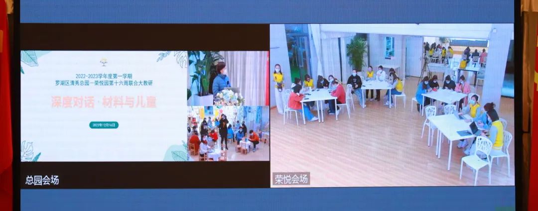 12月16日,清秀幼教集团总园-荣悦园联合开展教研活动,围绕“看见材料”培训专题学习成效,分享、交流两园关于材料应用的班级、园所实践经验,实现学深悟透、学以致用,用而至新的目标。本次联合活动通过线下现场观摩、线上视频观摩、经验案例分享和互动研讨等形式,搭建两园教师的交流平台,形成共同研究材料的成长共同体,不断提升教师对材料的认知和自身艺术素养,进而更好地支持幼儿在园的生活和游戏活动。