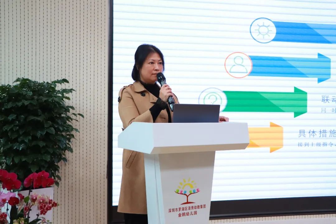 活动分享后郭琼总园长深深感动于分享人员能充分发挥主观能动性的认真思考与梳理,并结合15个分享案例的类型特点、亮点及改进建议等方面进行了点评。为助力后勤管理工作提升,郭园以《携手幕后,绽放精彩》为题,从后勤工作中的日常管理、卫生保健、安全工作、其他工作四个模块与大家共享后勤管理的行动策略——提高素养乐享其中;科学组织合理安排;评价与反馈的原则;过程高效合法依规,并期待管理团队持续保持工作责任心、耐心,依靠和发挥团队协作能力,不遗余力地做好幼儿园后勤保障。