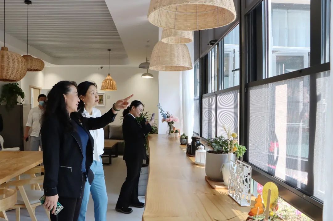参观过程中,郭琼重点介绍了金鹏园室内外环境的设计理念,幼儿活动室、功能室、户外活动区域等场地的扩展与投用使用情况。大家不时驻足,为幼儿园在空间利用、环境打造、布局布景等以儿童为本的细节做法点赞。如,区域创设时兼顾安全与美感、造型雅致而灵动、颜色配比舒适、用材选取安全等。冯健表示幼儿园里的布置处处彰显幼儿教师的智慧与高雅,一廊一角、一画一景给予了孩子们美的享受与艺术熏陶,是孩子的幸福。