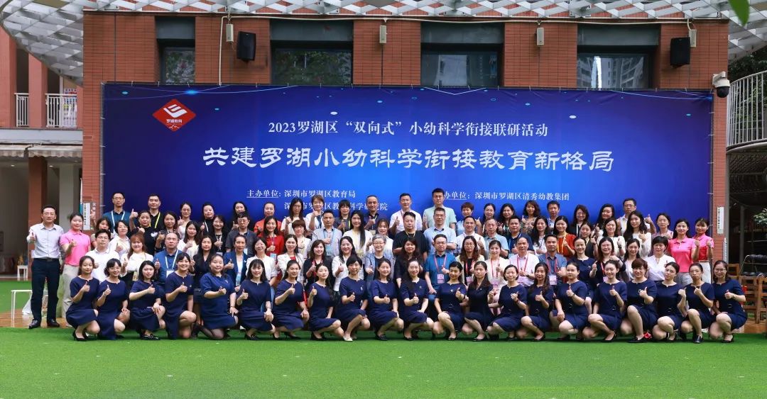 为深入贯彻国家《教育部关于大力推进幼儿园与小学科学衔接的指导意见》,探索共建罗湖区小幼科学衔接的新格局,提高学校、幼儿园教育质量,促进儿童的可持续发展。5月17日上午,由罗湖区教育局、罗湖区教育科学研究院主办,罗湖区清秀幼教集团承办的2023罗湖区“双向式”小幼科学衔接联研活动在罗湖区清秀幼教集团荣悦幼儿园举行。深圳大学教育学部教授费广洪、罗湖区教育局四级调研员李米莎、罗湖区教育科学研究院副院长陈小波、罗湖区教育局学前教育科科长田仙贵科长、罗湖区教育局基础教育科副科长曾琳琳、教科院小幼部主任张静,各区教研员、罗湖区学校、幼儿园代表约100人参加了现场活动,6000多人次在线收看活动直播。