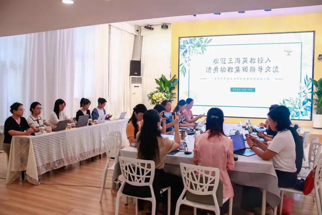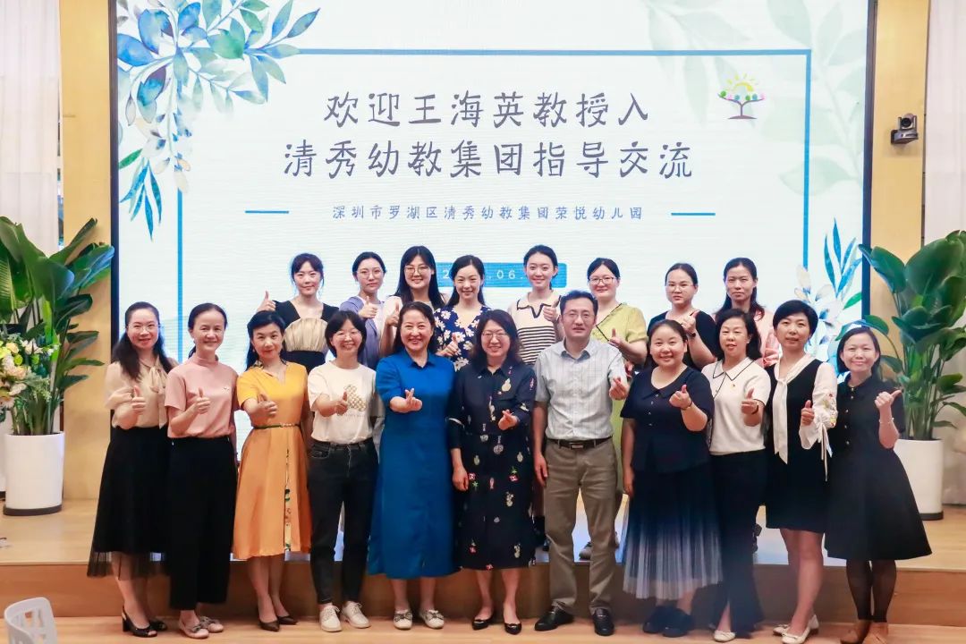 2023年6月9日,南京师范大学王海英教授在深圳市罗湖区教育科学研究院李静老师的陪同下莅临罗湖区清秀幼教集团指导课程建设。以清秀荣悦幼儿园的教育现场为样本,王教授在集团及园所领导的陪同下参观了园所室内外环境,细致观察孩子们学习的精彩瞬间,并与集团各园管理人员、教研员一道深度研讨幼儿园课程建设。