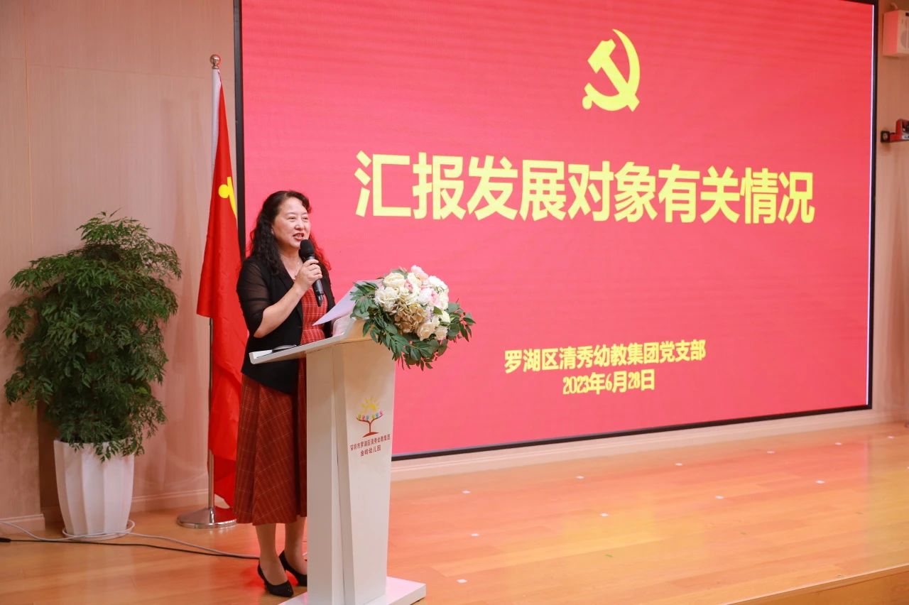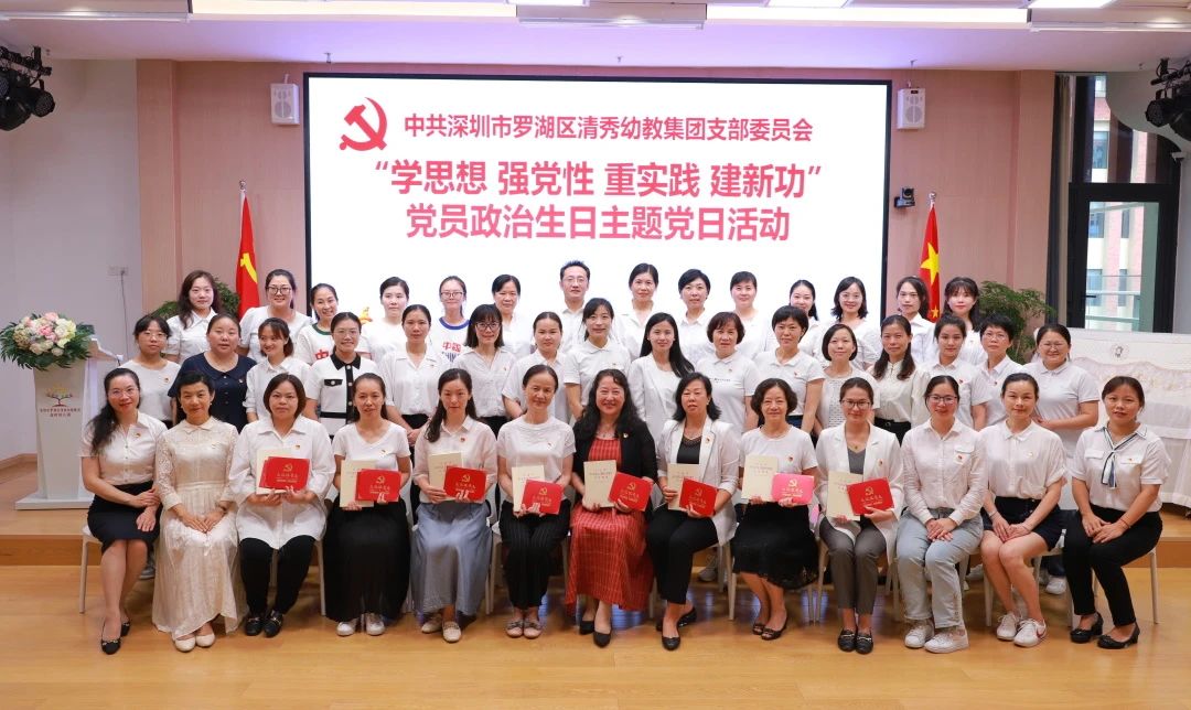 为庆祝中国共产党建党102周年,引导党员深入学习贯彻习近平新时代中国特色社会主义思想和党的二十大精神,强化党员的宗旨意识,牢记入党时的铮铮誓言,激发党员的工作热情和无私奉献精神。2023年6月28日,深圳市罗湖区清秀幼教集团党支部召开了以“学思想、强党性、重实践、建新功”为主题的书记上党课暨“政治生日会”主题党日活动。活动由支部组织委员卢少玲主持,支部党员、入党积极分子共 48 人参会。
