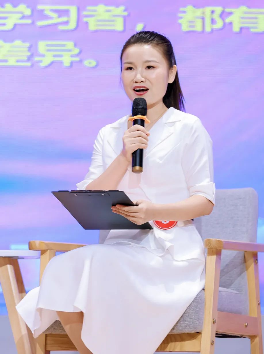 3个小时的精彩角逐,黄香琴老师自信、优雅地进行自由演讲,将理论与实践相结合,智慧又全面地展开答辩,传递出她从教13年浸润在孩子世界里用心、用情、用专业的教育坚守。在“无领导论坛”环节里,因被视频中老师对孩子独特之处的欣赏和引导所感动,她真情流露,在表达感受时一度哽咽,让现场评委看到香琴老师仁爱且专业的一面。香琴老师的精彩表现获得了评审团的高度认可及线上、线下观众的掌声与赞美,最终摘得桂冠。