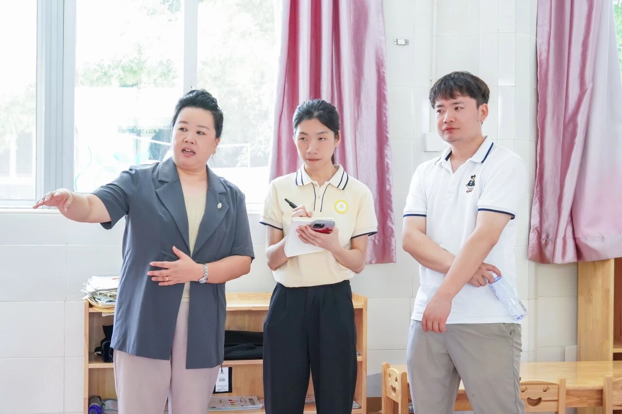 工作室主持人郭琼及团队实地考察了三所幼儿园的室内外环境,听取环境创设、课程建设及后勤管理情况。通过实地调研与一对一交流,深入剖析园所发展现状与课程定位,有针对性地为园所提供管理及教学难题解决方案。