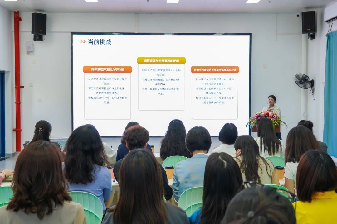 前沿理念拓视野,多元经验汇真知 工作室学员、汕头市濠江区马滘街道中心幼儿园园长李茜茜带领团队围绕园本课程建设作专题汇报。她聚焦《课程教学领导力》,从课程建设、师资培养、家园共育等维度剖析园所现存问题及行动成果。园内两位教师代表带来了主题探究案例《捕光捉影——光影的奇妙世界》《“沙”享世界 水“道”渠成》的经验分享,案例充分展现了园所在课程实施中的智慧与用心。 工作室助理李楠楠以《幼儿园课程建设经验分享——以清秀文化育人课程建设为例》为题,结合清秀文化育人课程建设的实践探索,从课程理念、目标设定、内容选择、资源开发运用、典型案例解读等方面全方位、多角度地分享了清秀课程建设的经验与心得,为园本课程建设提供了可操作性的范式。 工作室学员胡彦丹聚焦幼儿自主游戏,带来《户外自主游戏的探索与实践》的精彩分享。她深入剖析户外自主游戏对幼儿全面发展的重要意义,详细介绍园所在游戏环境创设、材料投放、教师指导策略等方面的创新做法与成功经验,为幼儿自主游戏的有效开展提供了有力支撑。 郭琼以《智慧保教视域下的教师专业发展》为题,带来了一场发人深省的专题报告。数字化转型的时代浪潮下,她系统阐释了教师“从经验型向研究型、从执行者向创生者、从个体成长到生态共建”的三重角色转型路径。同时强调,教师要紧跟时代步伐,敏锐捕捉数字化技术为幼儿教育带来的新机遇,根据幼儿的兴趣和需求,创造性地选择、运用数字化技术助力幼儿学习和教学设计。 聚焦科研破难题,协同攻关提质效 工作室团队与华南师范大学附属濠江园课题组成员针对濠江区区级课题华侨文化的研究开展深入研讨。工作室团队提到华侨文化挖掘和资源转化是课题研究的重点,建议课题组要梳理、分析华侨文化,从幼儿认知特点出发,精准提炼出适合幼儿理解和传承的华侨文化核心要素,再把抽象的华侨文化转化为生动有趣、符合幼儿身心发展规律的课程内容和教学活动。课题组明确了下一步的研究方向和工作重点,将把华侨文化课程作为园本课程持续探索的行动目标。 跨区互动促均衡,资源互通向未来 蒋海鹏表示非常感谢工作室团队前来传经送宝,为濠江区的幼教事业带来了前沿的理念、先进的方法和宝贵的经验。这种城乡幼儿园之间面对面、心贴心的交流互动活动能够有效缩短城乡教育差距,期待双方加强合作与交流,相互学习、共同发展。 郭琼提到三所幼儿园的先天条件极具优势,园本资源各有特色。然而,我们也要清醒地认识到,每一所幼儿园在发挥自身优势的同时,也面临着一些挑战和不足。例如,如何更好地将园本资源转化为系统的课程体系,如何提升教师的专业素养以更好地利用这些资源等,需不断探索适宜的特色之路。